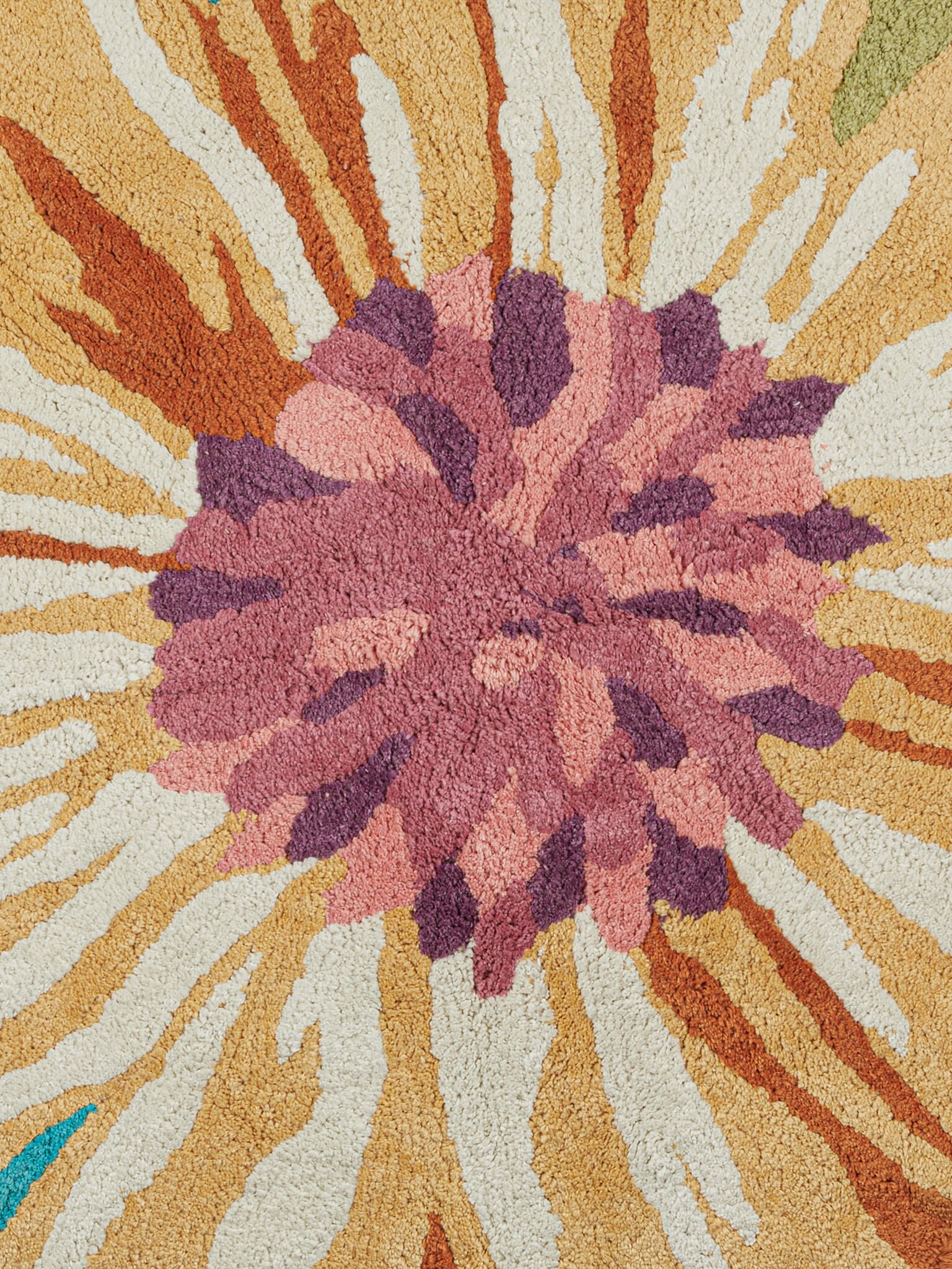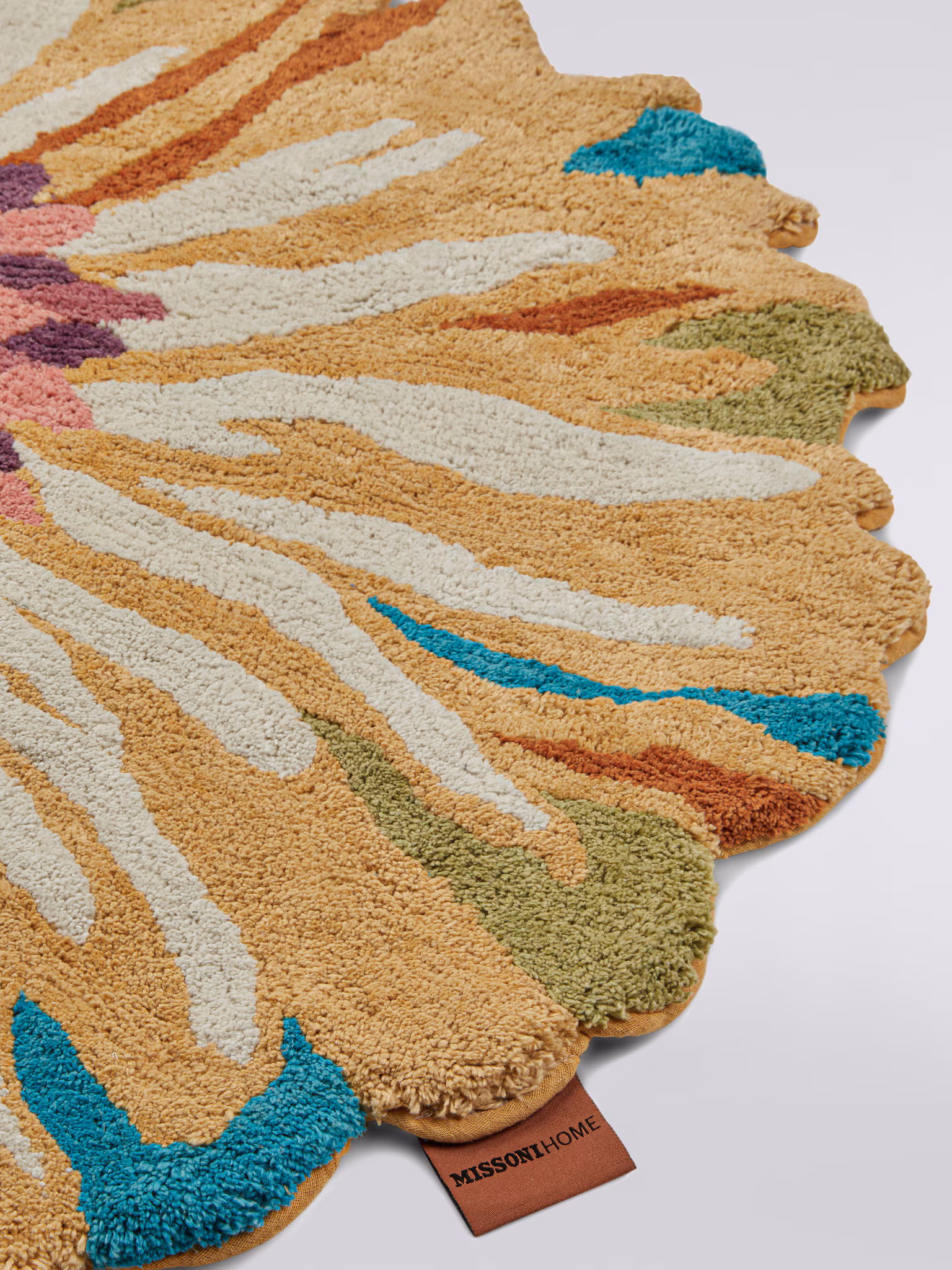 Blandine Baderomsmatte Ø 80 (100) er en rund matte i 100 % bomull terry med Missonis karakteristiske flerfargede design. Den blomsterformede utformingen tilfører et lekent og dekorativt preg, samtidig som den gir myk komfort under føttene. Med sklisikker bakside og god størrelse passer matten perfekt foran dusj, badekar eller som et blikkfang på baderomsgulvet.