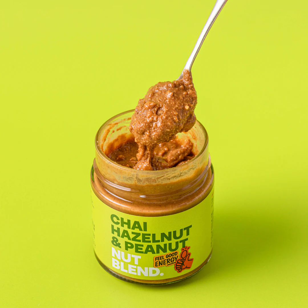 Inspirert av de søte og krydrede smakene av chai, blander dette splitter nye og eksklusive nøttesmøret nellik, kanel og ingefær. I tillegg til å tilsette både glatte og sprø ristede peanøtter, tilsetter vi også sprø ristede hasselnøtter for en tekstur og smak uten like.
