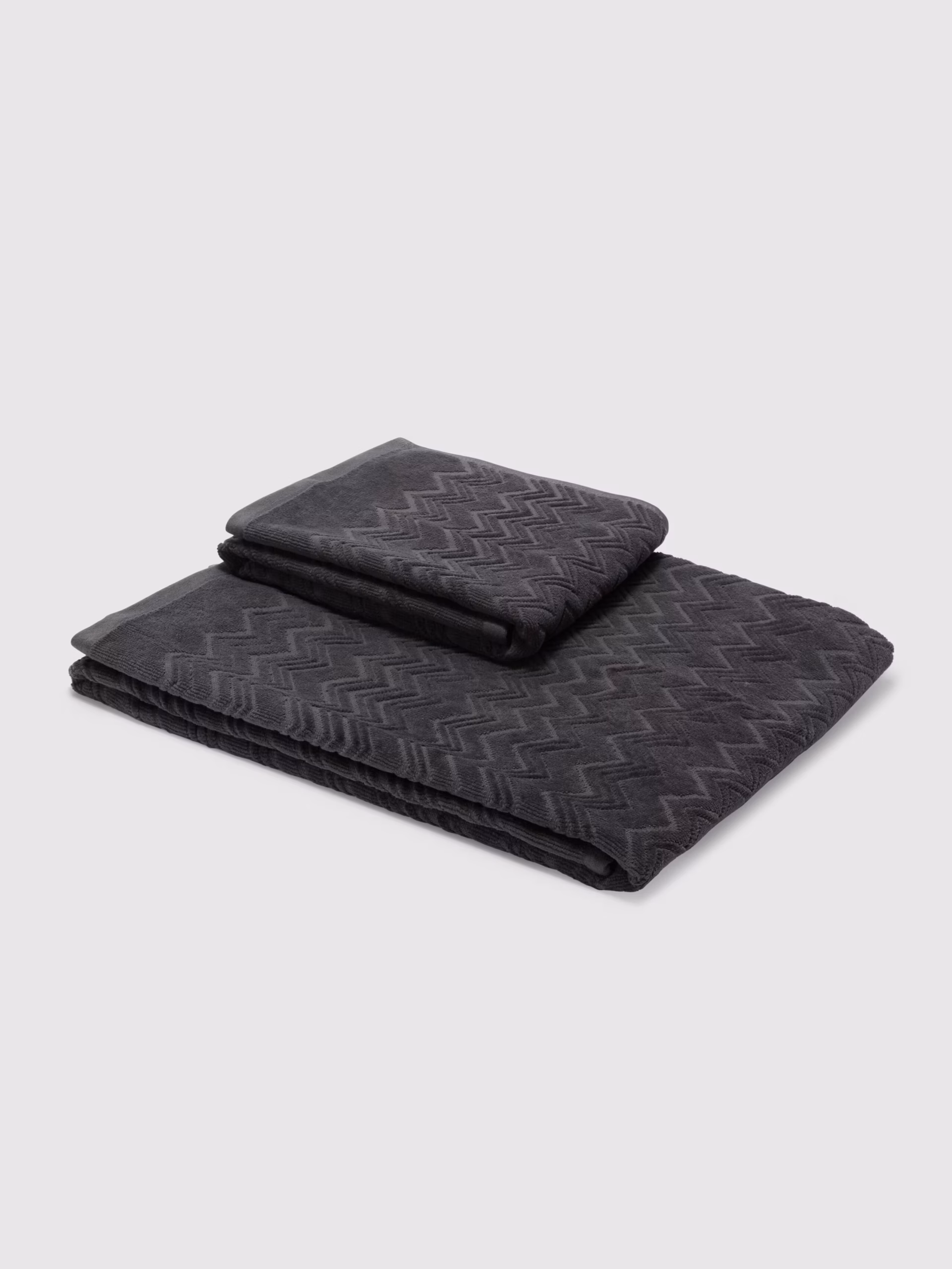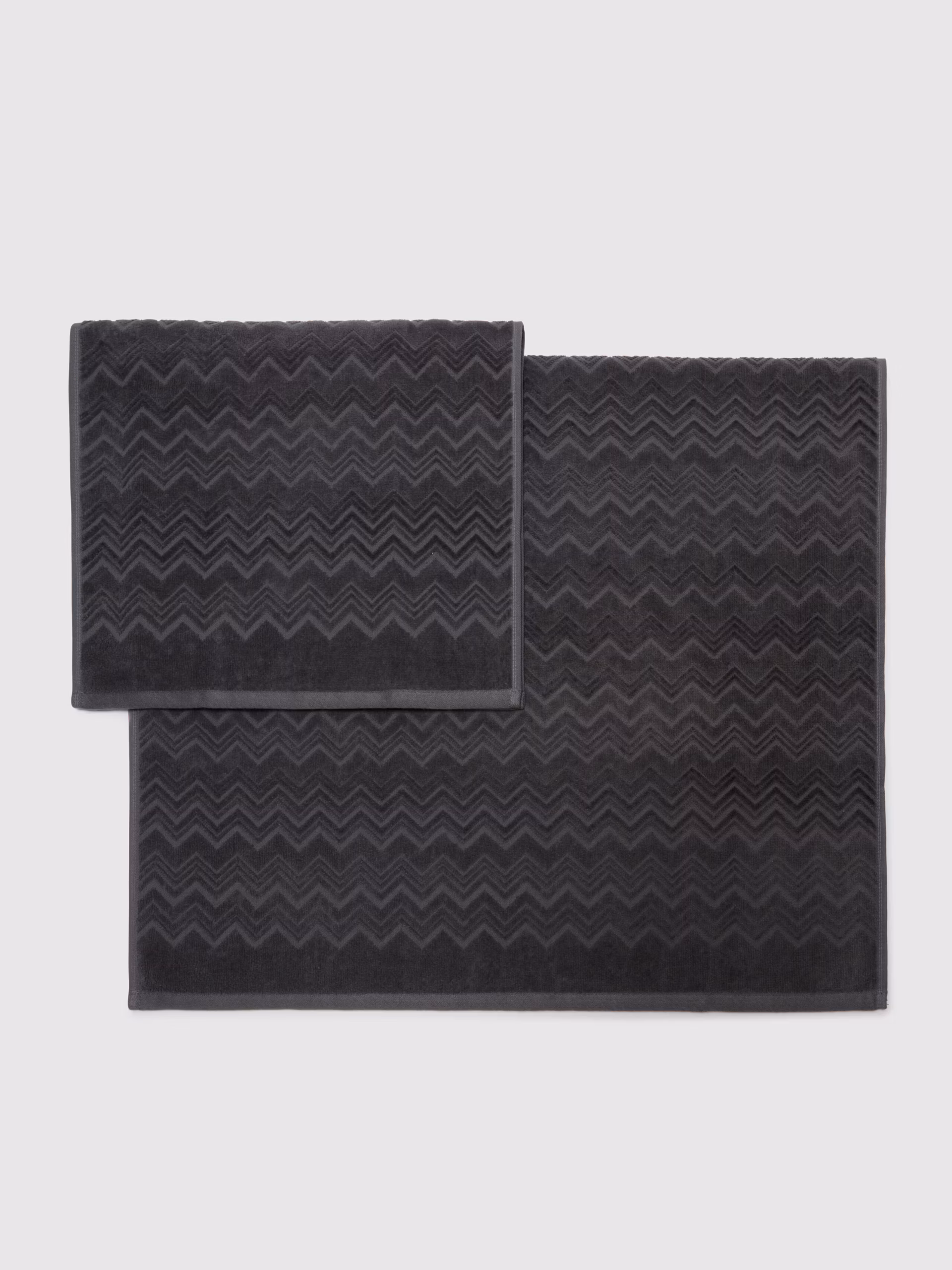 Mykt håndkle i 100 % bomull med ton-i-ton zigzag-design og velour/frotté-tekstur.
