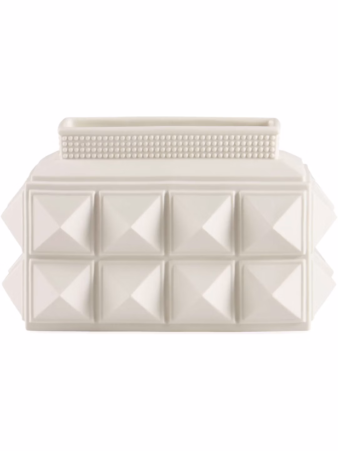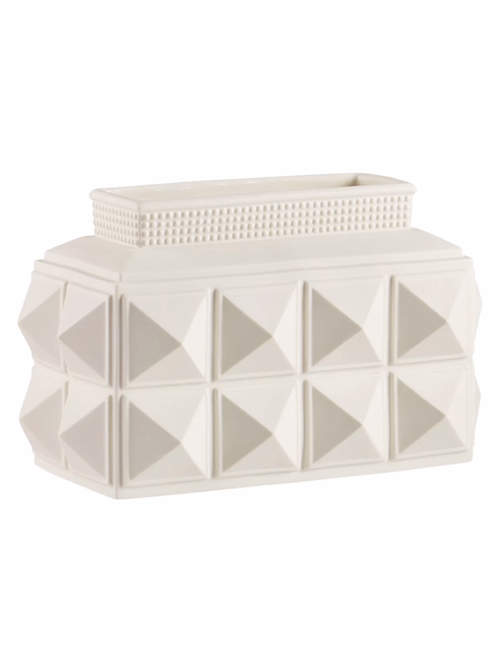 Dekorvase i matt hvitt porselen med blokkmønster og grafiske detaljer fra Jonathan Adler Charade Blocks-serien.
