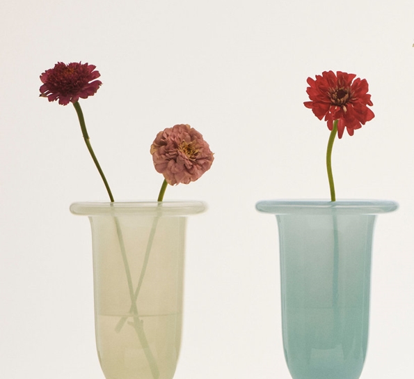 En empireinspirert form kombinert med kuraterte farger gjør Empire-vasen til en elegant og allsidig vase. Glassdesignet kommer i vakre, dempede toner, komplementert av tonale eller kontrasterende detaljer. Vasen er tilgjengelig i forskjellige størrelser og er ideell for å vise frem blomster på vinduskarmer og bord, samt som et dekorativt objekt i seg selv.