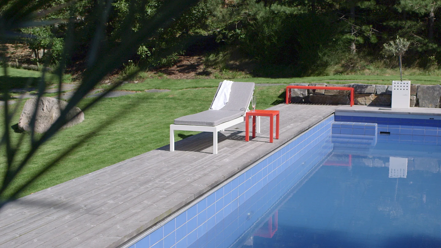 Solsengen er en del av FRAME-serien, og den er perfekt for alle som elsker sol like høyt som design. Den står støtt ved bassengkanten og tåler fint både vanlig vannsprut og klorvann. Puten tørker raskt opp når sola plutselig titter frem igjen, noe som er ekstra kjærkomment i et vekslende norsk sommervær.