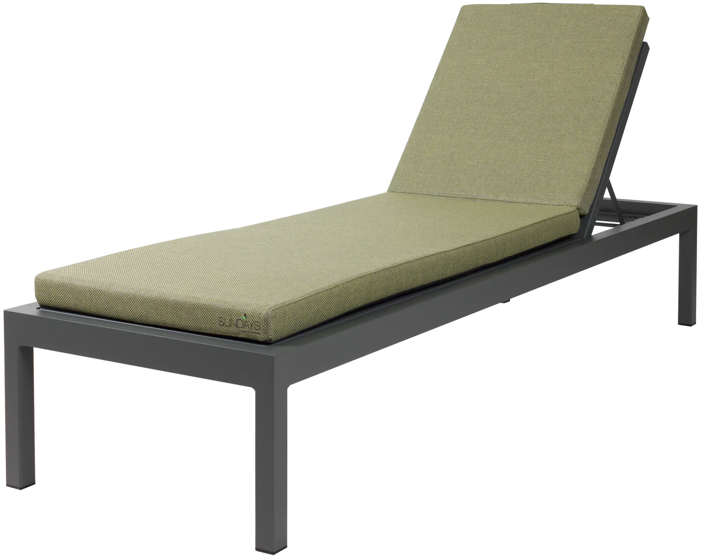 Solsengen med en justerbar rygg og en valgfri pute som passer for deg som både vil ha komfort og praktiske løsninger. I årets versjon er den enklere å flytte, siden det er lagt inn små, integrerte hjul i bakbeina som treffer bakken når du vipper solsengen opp. Den er også blitt mer ergonomisk, fordi ryggen er flyttet et stykke fram, og hele rammen er litt hevet fra bakken.