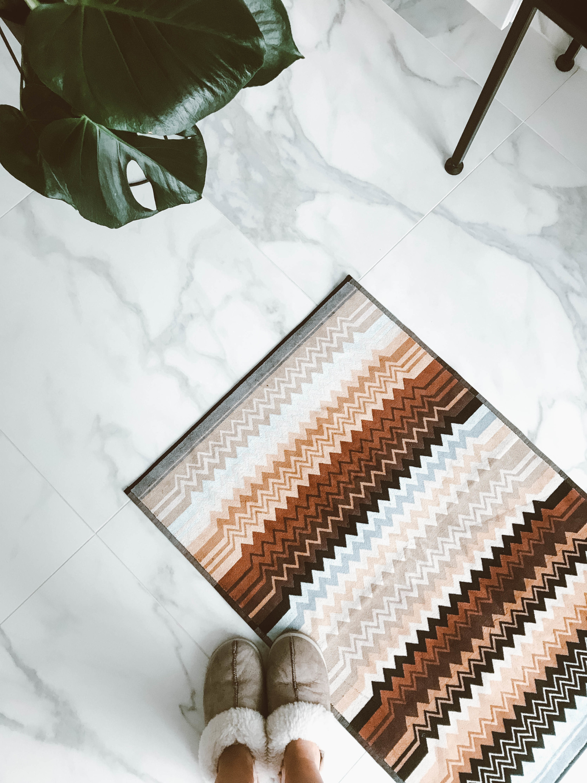 Det ikoniske Missoni zigzag-mønsteret i fargekode 160, med mørke og flerfargede toner, tilfører energi og eleganse til rommet. Med sin størrelse passer matten perfekt foran dusj eller badekar, der den både fungerer som et dekorativt element og som en komfortabel overflate under føttene.