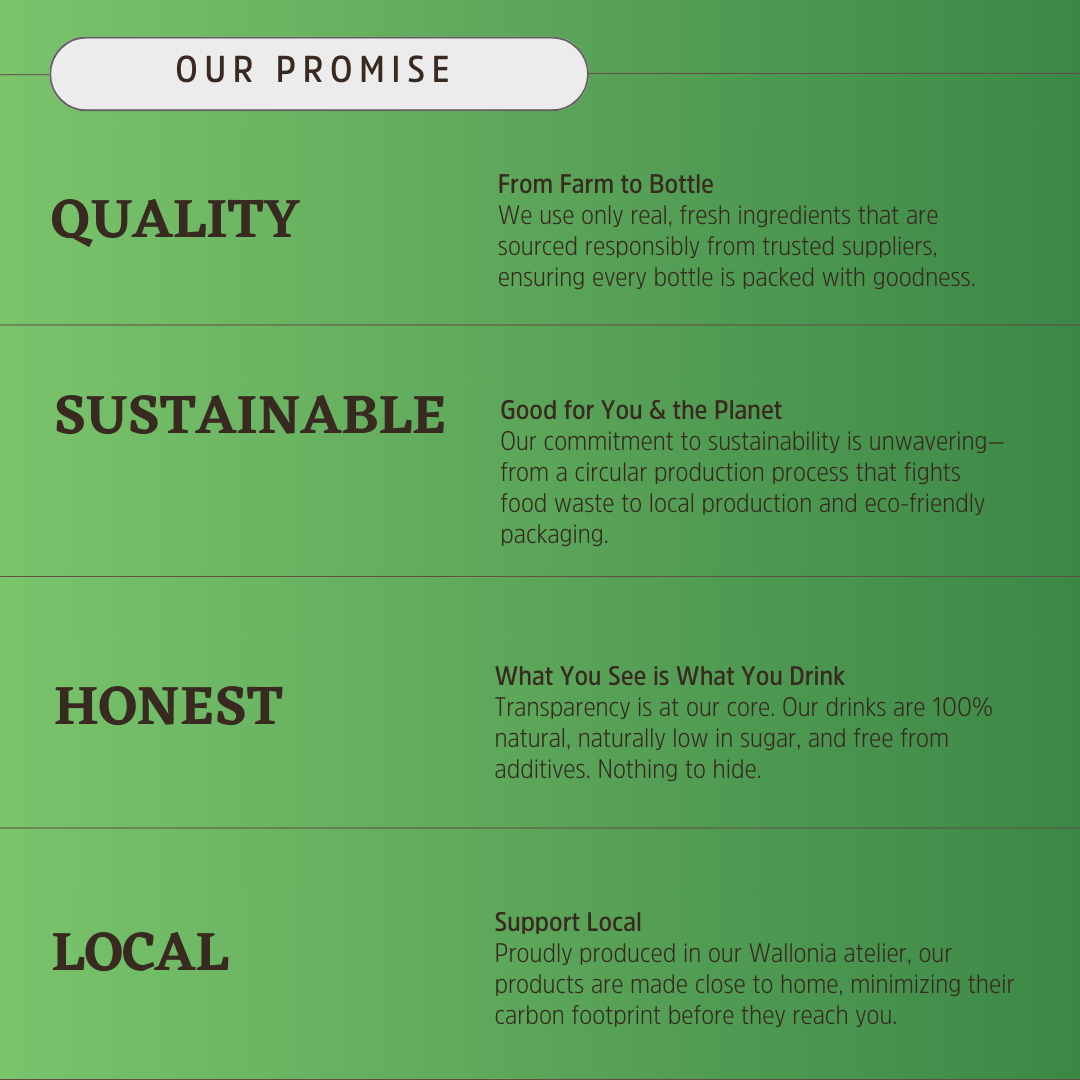 Aloe vera*, lime*, sitron*, agave*, ingefær*, vann, basilikum*, magnesium og kalium* (*ØKOLOGISK). VEGANSK.