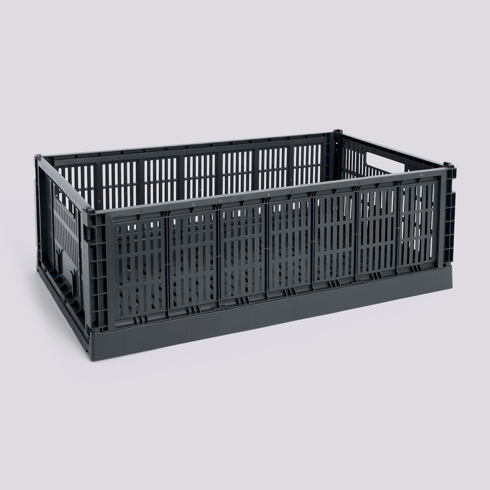 HAYs Colour Crate er en serie praktiske, tilpasningsdyktige oppbevaringsbokser med perforert design. Laget av 100 % resirkulert forbrukerplast, kommer disse stabelbare boksene i kuber, firkanter og rektangler i et bredt utvalg av farger og størrelser. De kan suppleres med lokk og hjul, og plasseres inni hverandre i flere konfigurasjoner, noe som gjør dem ideelle for oppbevaring, utstilling og til og med innovative møbler. Deres multifunksjonalitet, kombinert med muligheten til å brettes flatt når de ikke er i bruk, gjør dem til en allsidig og plassbesparende oppbevaringsløsning.