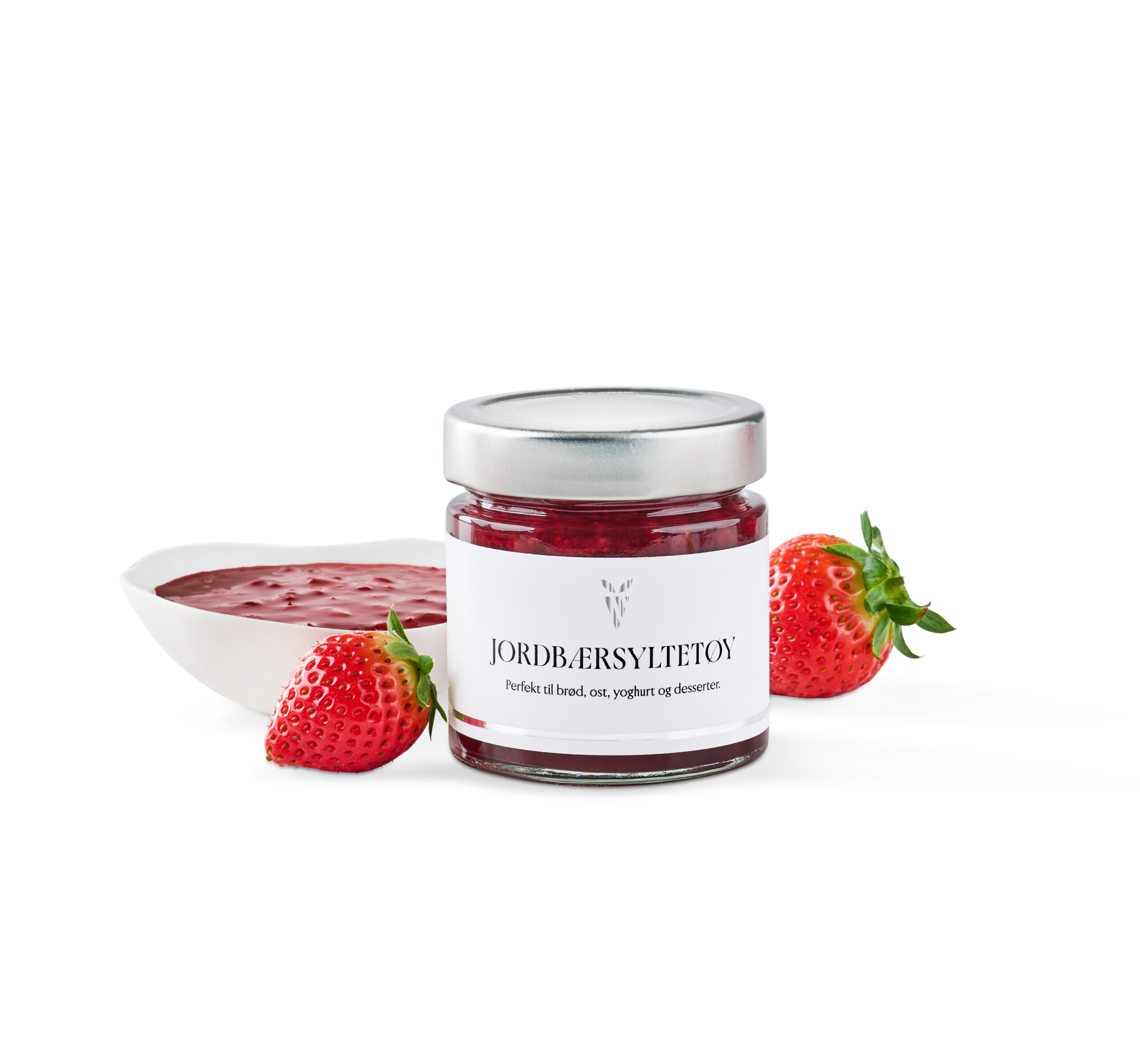 Vårt jordbærsyltetøy er laget av jordbær dyrket og høstet hos oss, når bærene er på sitt aller beste. Vi koker syltetøyet skånsomt for å bevare den friske smaken, den naturlige sødmen og den rike fargen fra bærene.