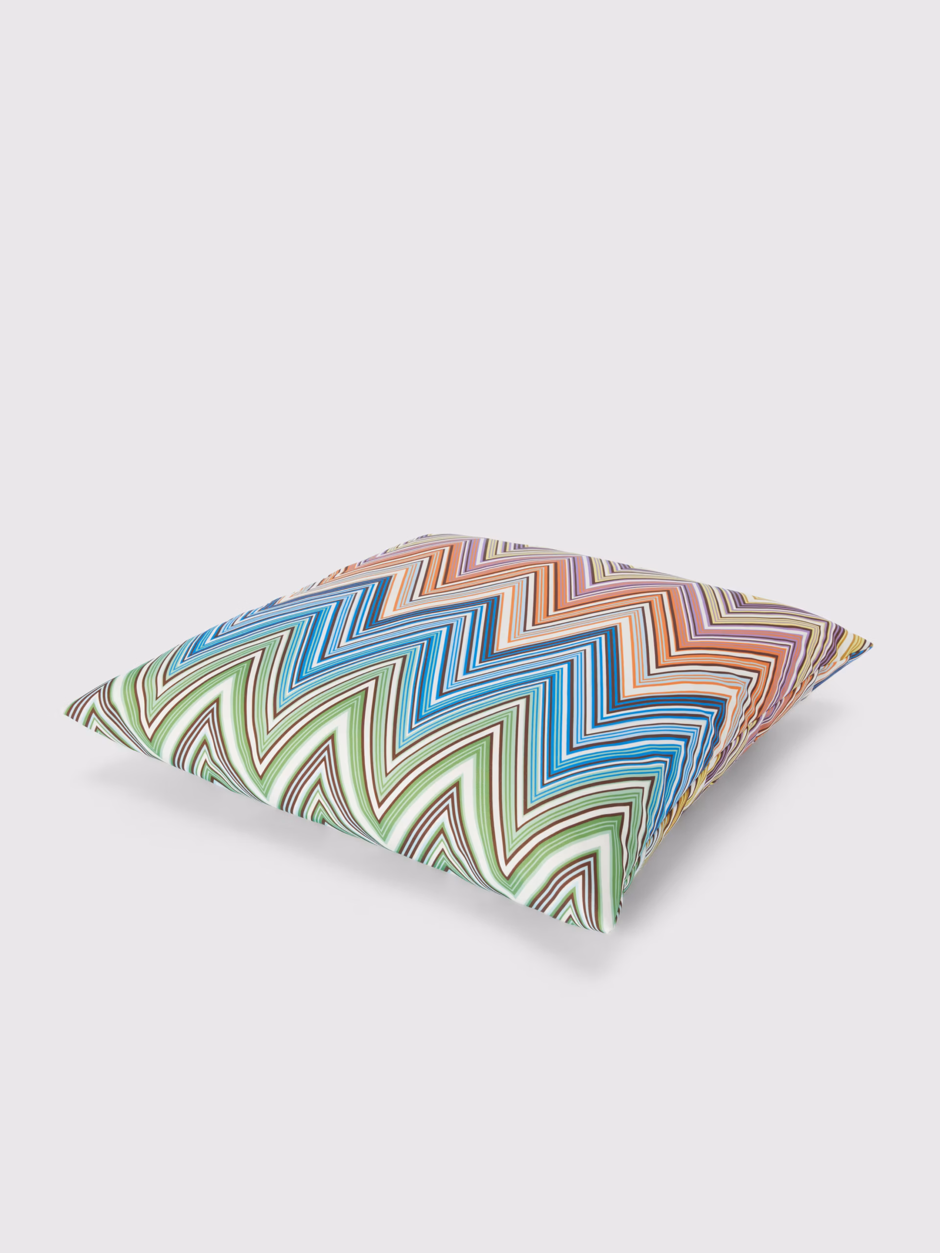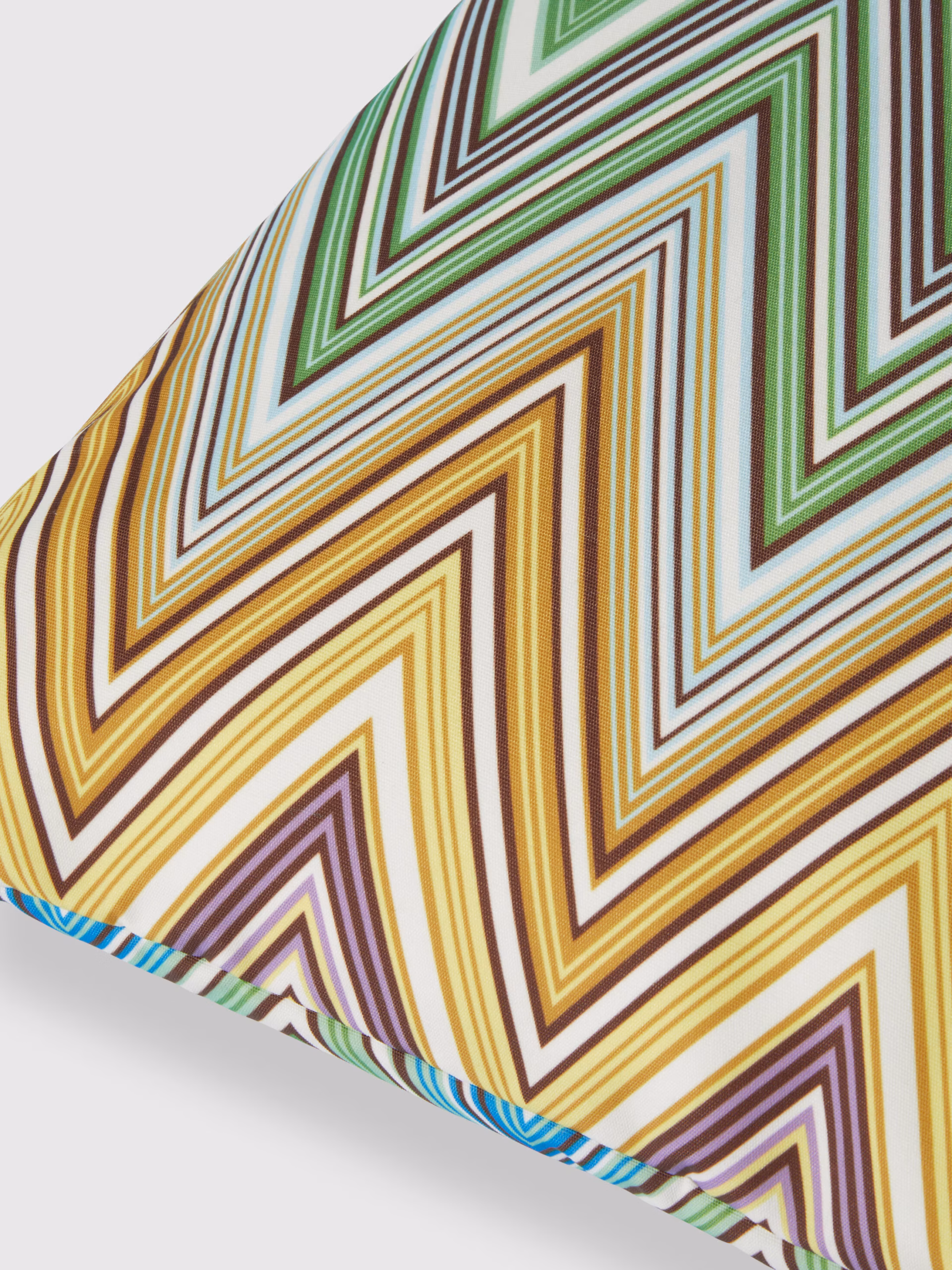 Stor og værbestandig utendørspute med Missonis ikoniske mønster i harmoniske, varme fargetoner.