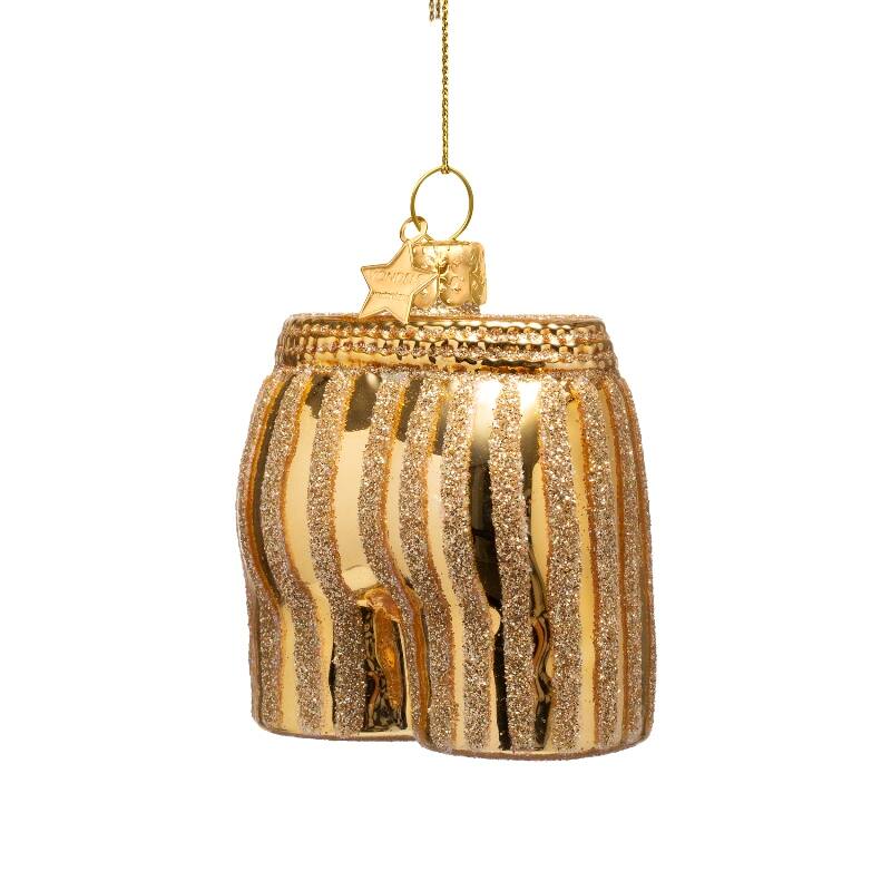 Ornament glass shiny gold boxer shorts w/stripes