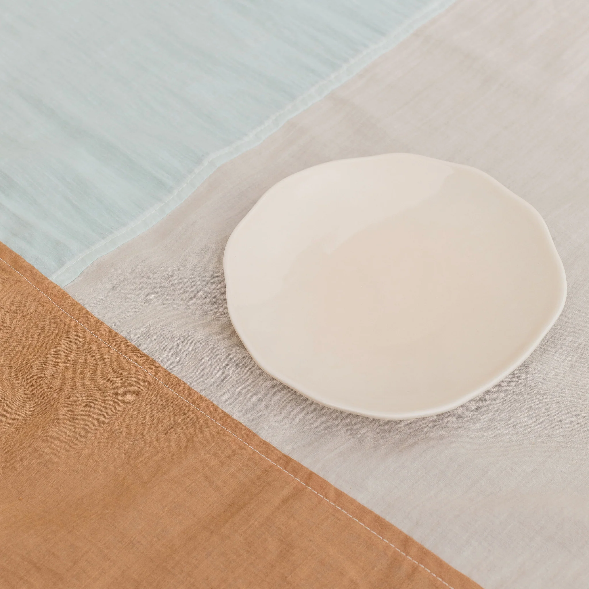 Keramisk dessert, snacks eller brød -fat med uregelmessige former. Sprayet for hånd.