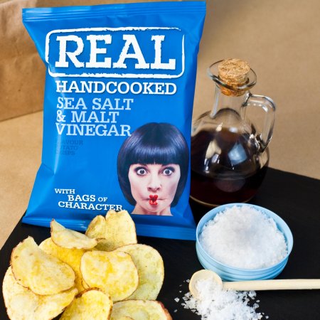 REAL Crisps ble grunnlagt i 1997 i hjertet av Sør-Wales, og har alltid skilt seg ut fra mengden med sine deilige håndkokte crispy chips med de spesielt gode smakene. REAL bruker kun de beste potetene, skjærer dem og koker dem deretter for hånd.