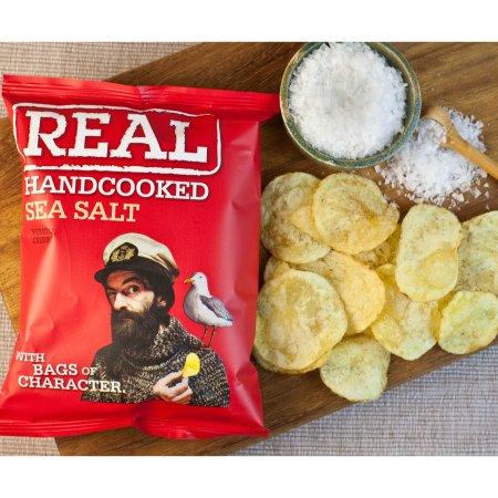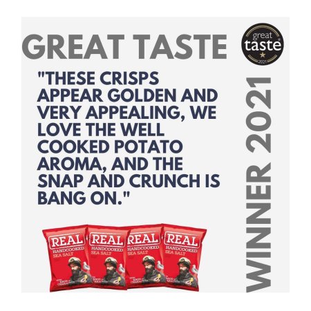 REAL Crisps ble grunnlagt i 1997 i hjertet av Sør-Wales, og har alltid skilt seg ut fra mengden med sine deilige håndkokte crispy chips med de spesielt gode smakene. REAL bruker kun de beste potetene, skjærer dem og koker dem deretter for hånd. Sea Salt & Vinegar og Ham & English Mustard har blitt en av favorittene i Norge. REAL crisps for REAL people. |