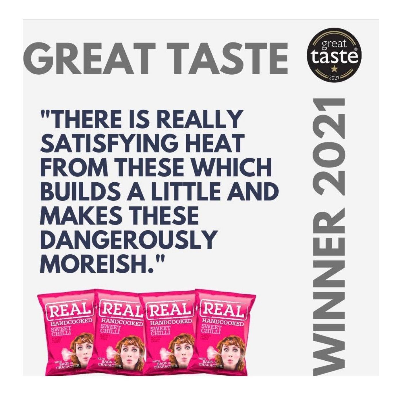 REAL Crisps ble grunnlagt i 1997 i hjertet av Sør-Wales, og har alltid skilt seg ut fra mengden med sine deilige håndkokte crispy chips med de spesielt gode smakene. REAL bruker kun de beste potetene, skjærer dem og koker dem deretter for hånd. Sea Salt & Vinegar og Ham & English Mustard har blitt en av favorittene i Norge. |
