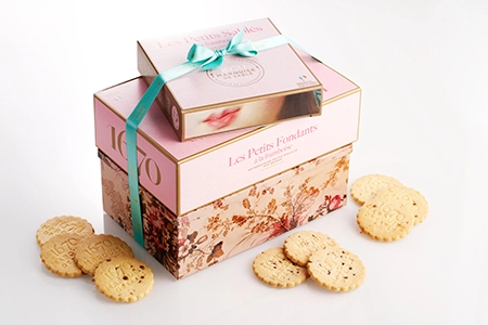 Delikatessen af hindbærchips og den gode smak af frisk smør gir denne lille shortbread en autentisk og delikat smak. Håndlavet av våre konditorer, blir disse cookies deretter omhyggelig hentet i hånden og deretter pakket i små friske poser. Nettovekt 100g